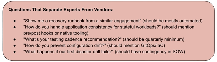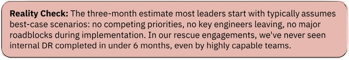 The hidden risk even strong teams face is that disaster recovery is something you learn through repeated implementation. Your team will build it once for your specific environment, and will inevitably hit edge cases they didn't anticipate. That's fine if you have the time and budget to iterate.